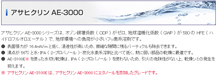 金屬部件等用水系或半水系清洗,并用純水漂洗后,再用AE-3000進行去水干燥,不會有斑點殘留,在短時